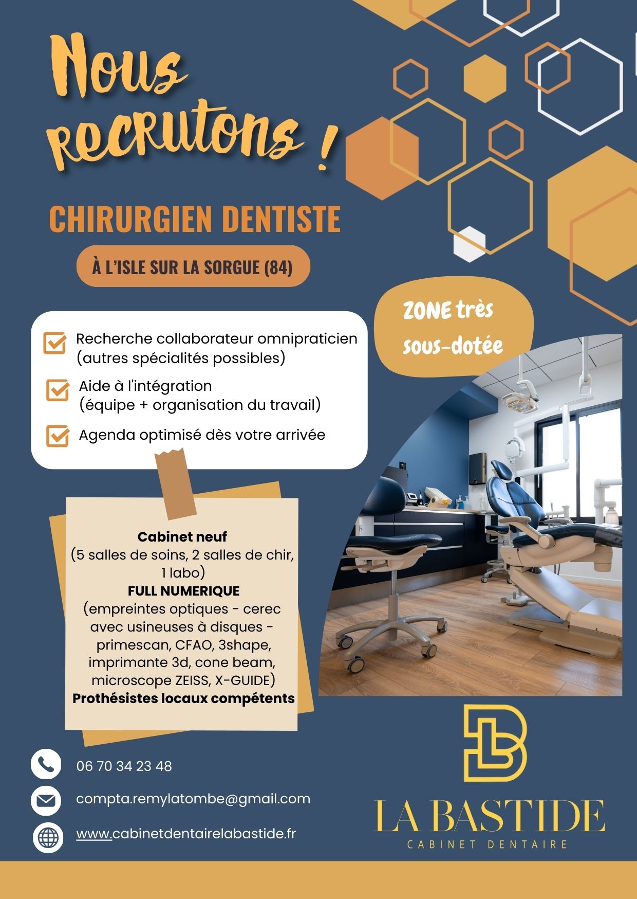 Une opportunité professionnelle à fort potentiel, idéale pour un(e) jeune diplômé(e) en chirurgie dentaire.